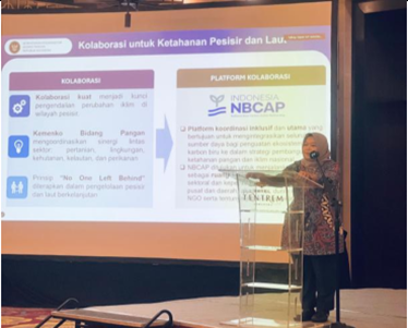 Salah satu bentuk konkret kolaborasi tersebut menurut Dr. Nani adalah pembentukan National Blue Carbon Action Partnership(NBCAP), sebuah platform koordinasi inklusif nasional yang berfungsi mengintegrasikan sumber daya dan aksi seluruh pemangku kepentingan—pemerintah pusat dan daerah, akademisi, dunia usaha, lembaga riset, NGO, serta masyarakat pesisir—dalam upaya penguatan ekosistem karbon biru untuk mendukung strategi ketahanan pangan dan iklim nasional.